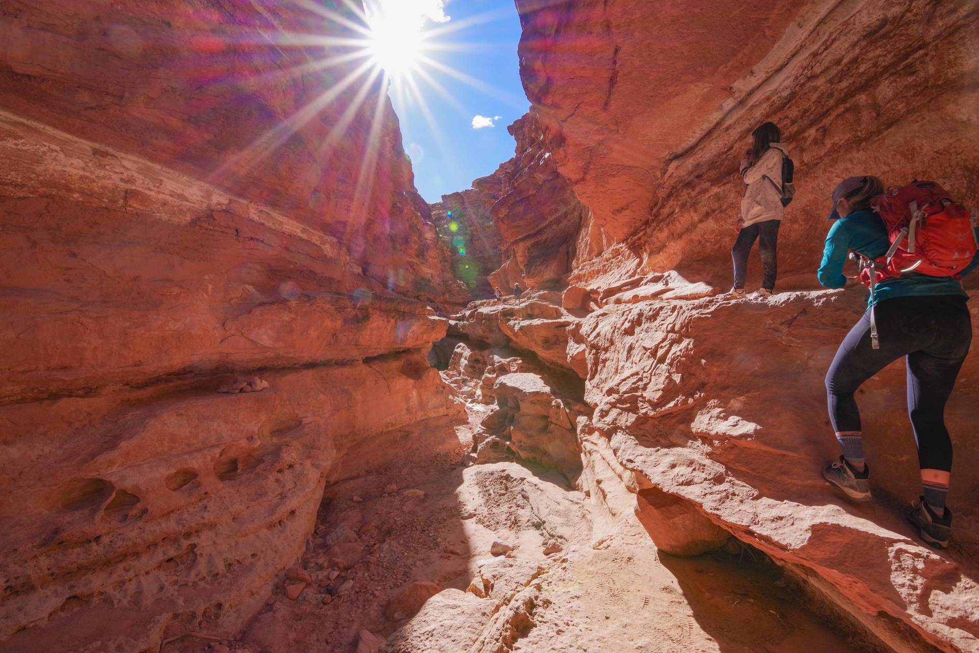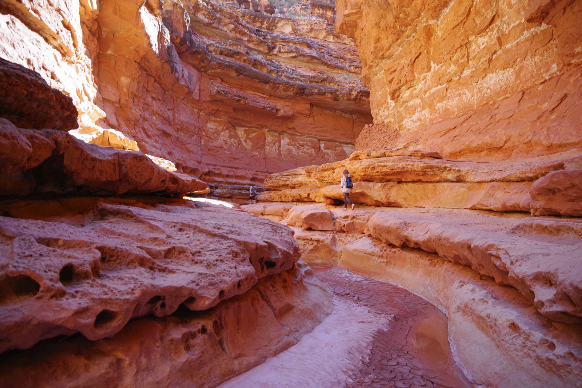 An epic five-star adventure through a stunning canyon to a riffle on the Colorado River within Grand Canyon National Park. This hike starts off easy and straightforward for the first half mile, but things get more challenging as you approach a thirty-foot horseshoe-shaped cliff. While many hikers turn back here, the more adventurous can continue, navigating through difficult route finding and moderate scrambling sections.