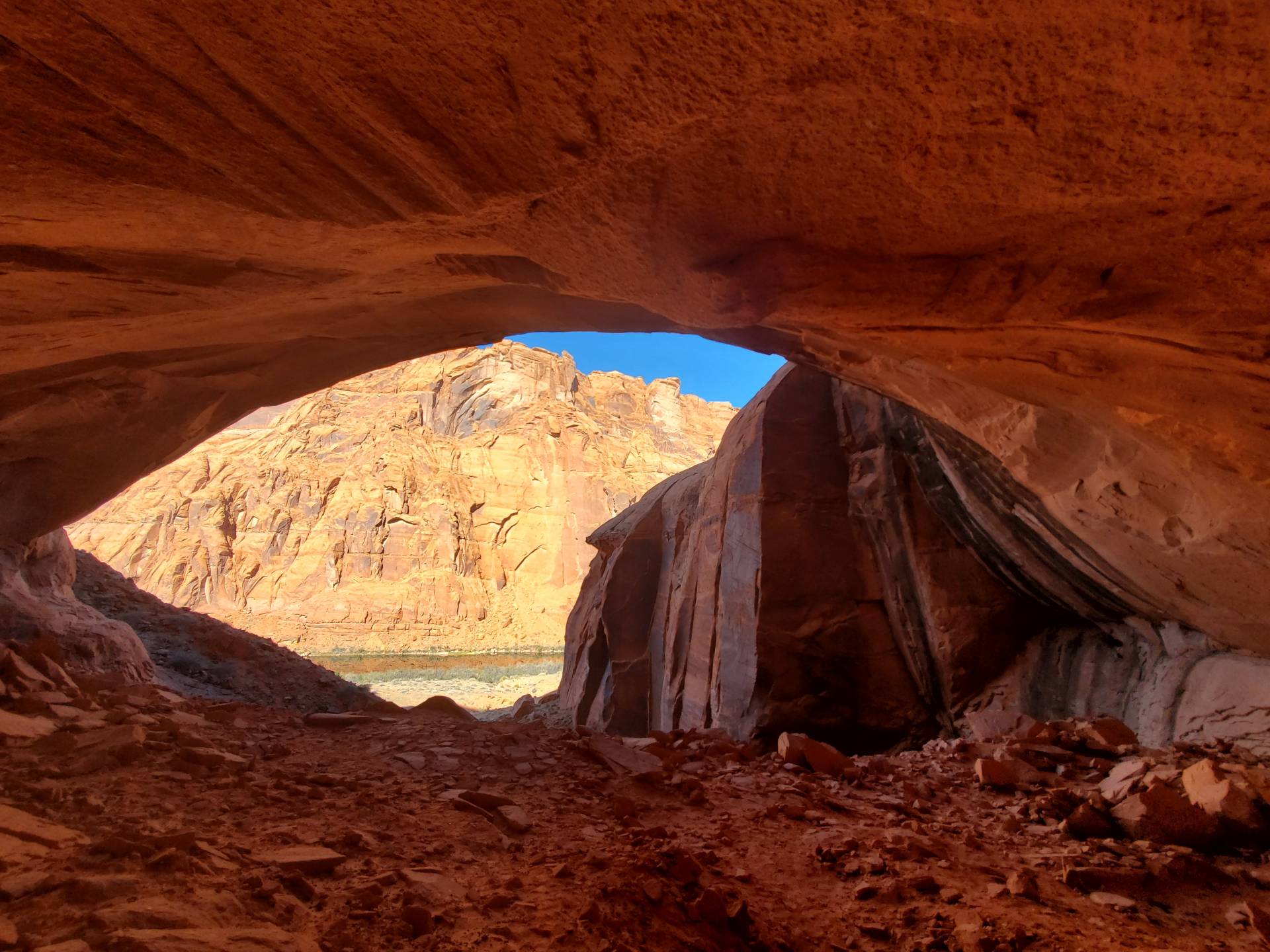 Hislop Cave: This cavern, shaped like a giant eye, offers stunning views of the Colorado River and Echo Peaks. The cave’s name honors John Hislop, who carved an inscription on a boulder in 1889 during a fateful canyon expedition. The hike to the cave is moderate, requiring walking over loose talus scree, sand, and rock.