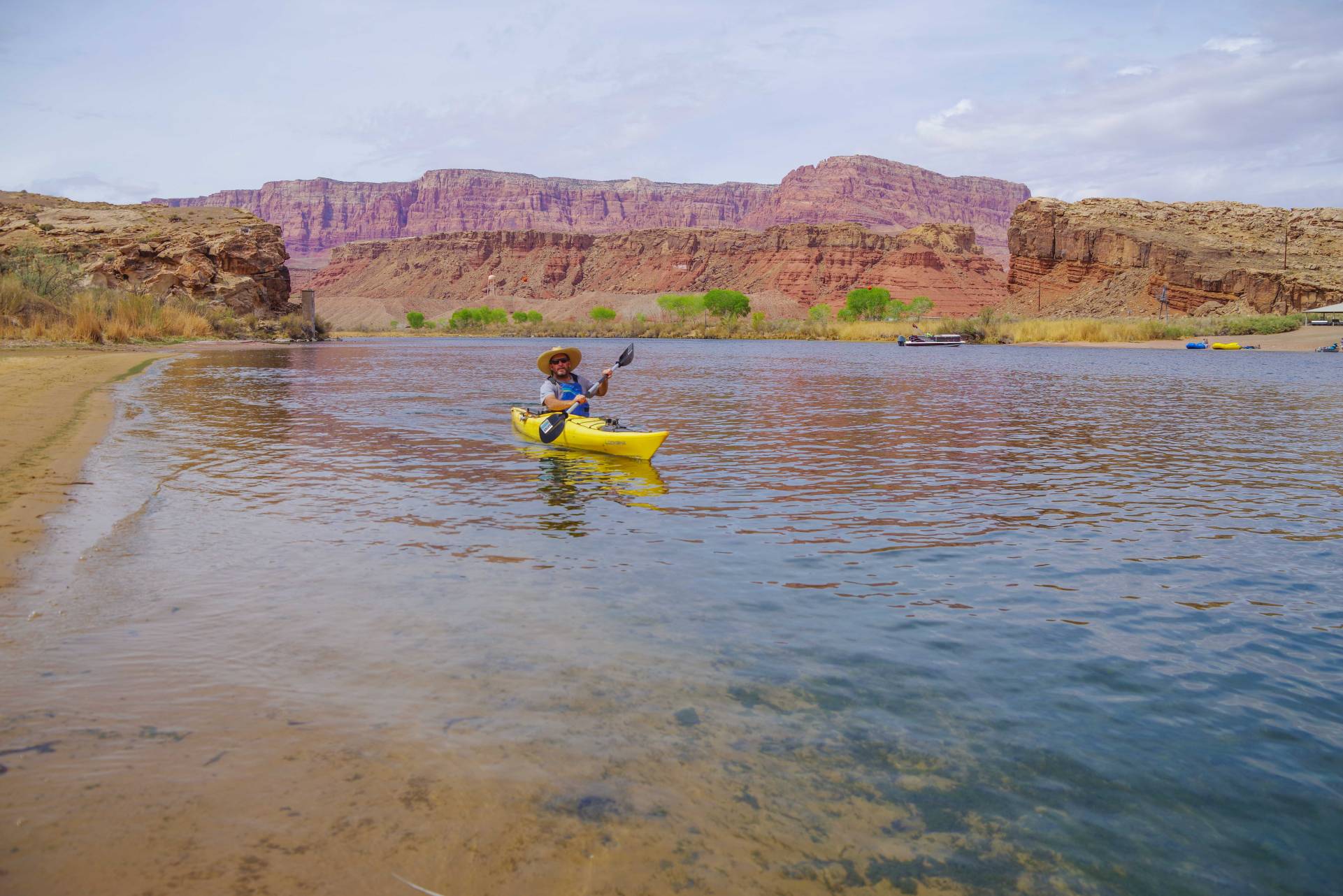 If you’re looking for a peaceful trip without the hassle or expense of paying for a backhaul, this is the adventure for you. Launch your kayak or stand-up paddleboard at the Lee’s Ferry launch area and paddle upstream for 2.25 miles, skillfully dipping in and out of eddies to avoid battling the current. Along the way, marvel at the crystal-clear water, watch the mesmerizing emerald moss swaying with the flow, and see trout darting from beneath your kayak. You’ll be surrounded by a rich array of birdlife, and if you’re lucky, you might spot a wild horse sipping from the river’s edge or a nimble Big Horn Sheep scampering up the cliffs. Take a break at one of the many sandy beaches, where you can rest and dip your toes in the refreshing waters. Paddling on this trip is generally easy with favorable winds, but it can become challenging if the winds don’t cooperate, so be sure to check the conditions beforehand. The comforting thought is that if you ever get too tired, you can simply turn around and float back with the current. At river mile 2.25, pull over at a grassy beach at a constriction in the river, just after passing the Echo Peaks formation, where a hike will take you up the wash from the first major drainage coming in from the south side of the river.