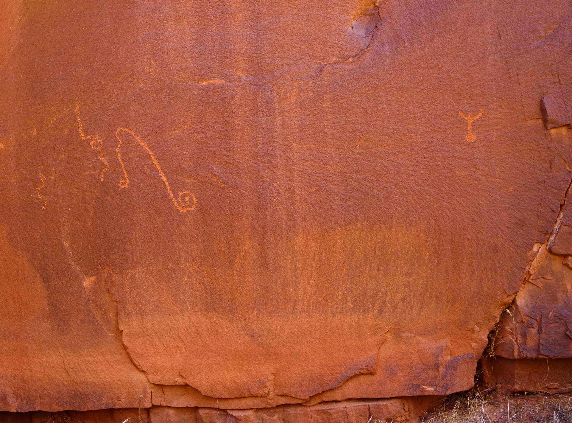 Petroglyphs: Have fun trying to discover the Ancestral Puebloan petroglyphs etched into a cliff band up a slope. These carvings can be challenging to locate due to the lack of a dedicated trail, which adds an element of adventure for the intrepid explorer. Look for the smoothest, darkest rock along the cliff line. The hike is moderate, so if you find yourself scrambling, you may have strayed off course.