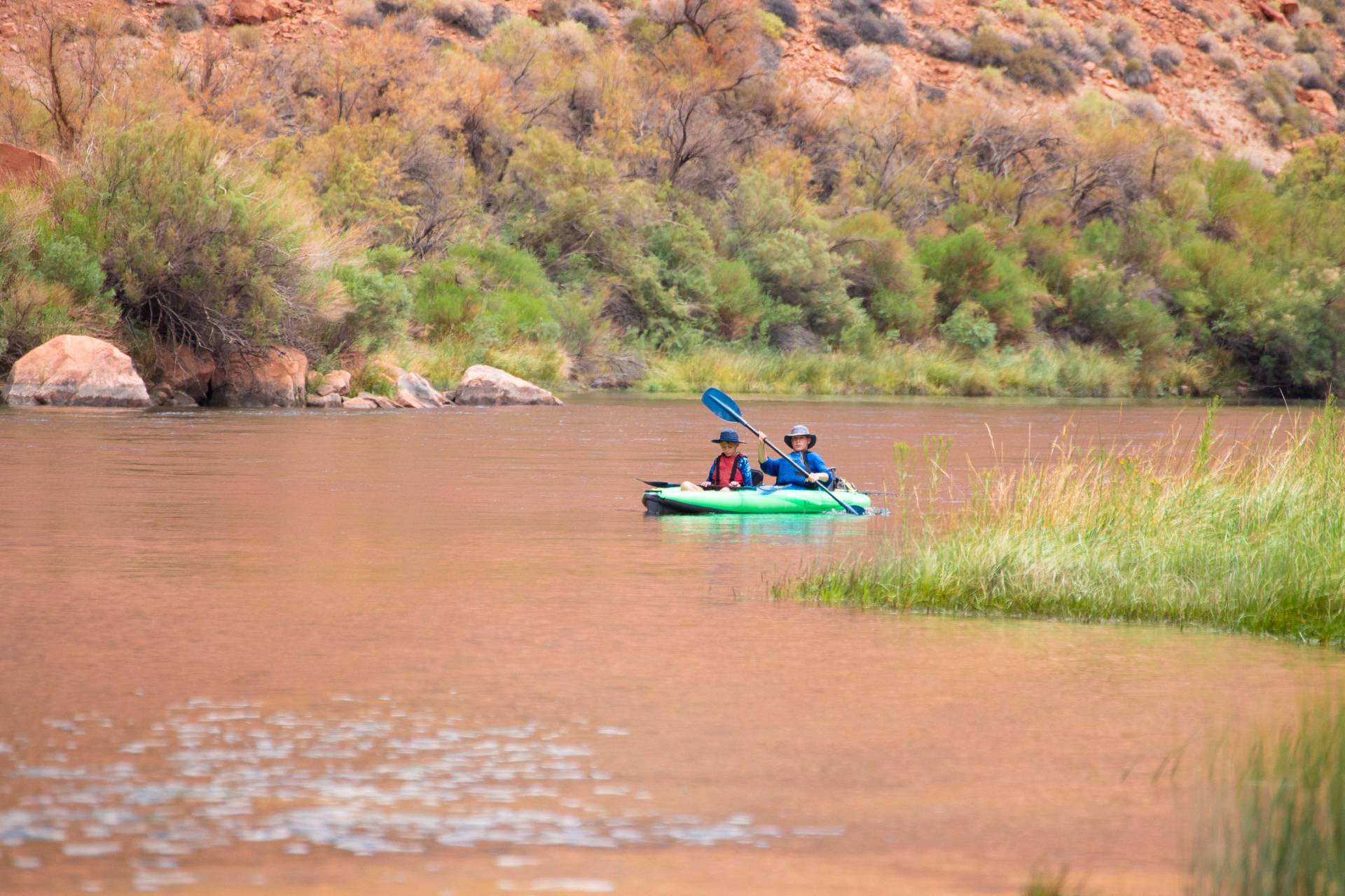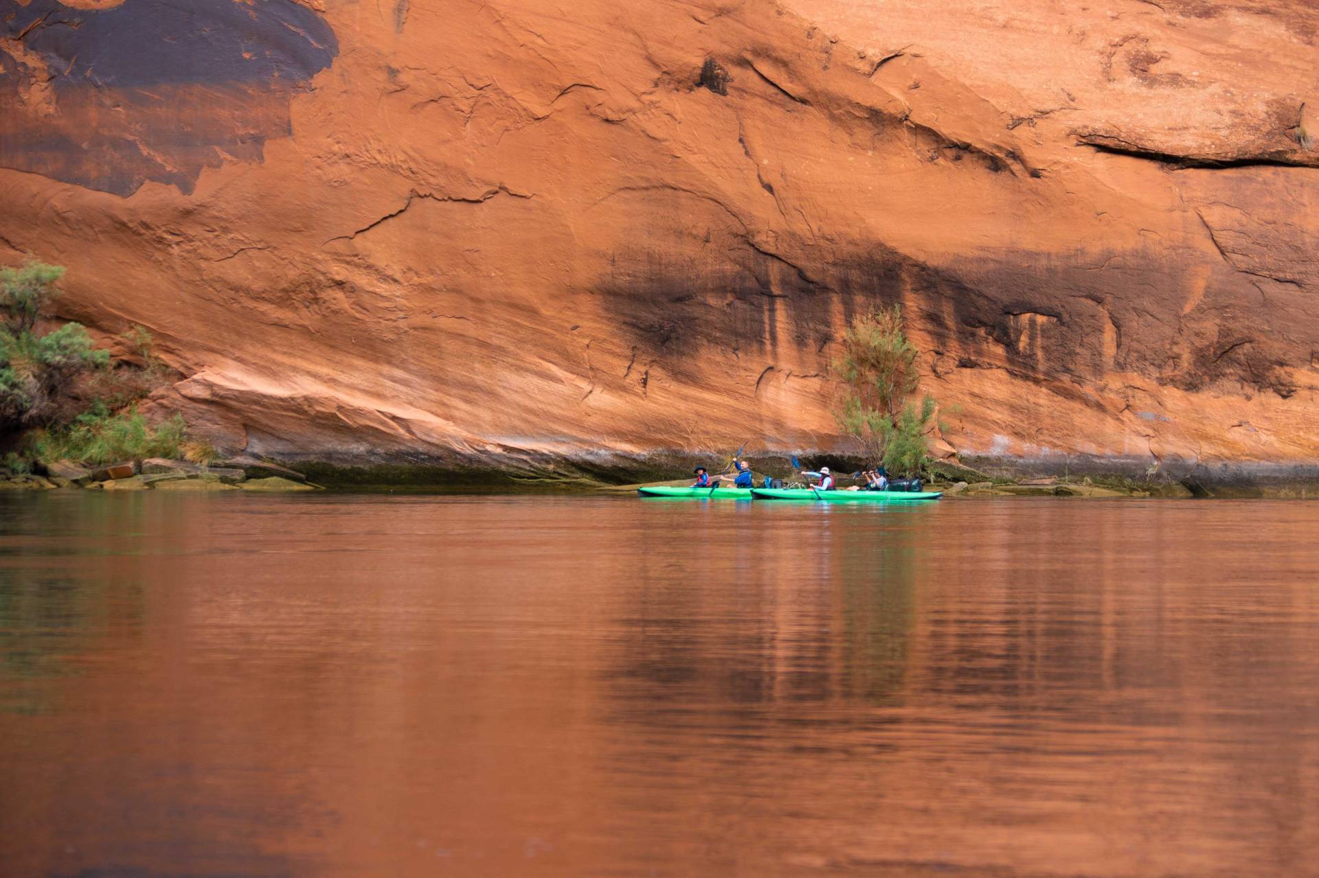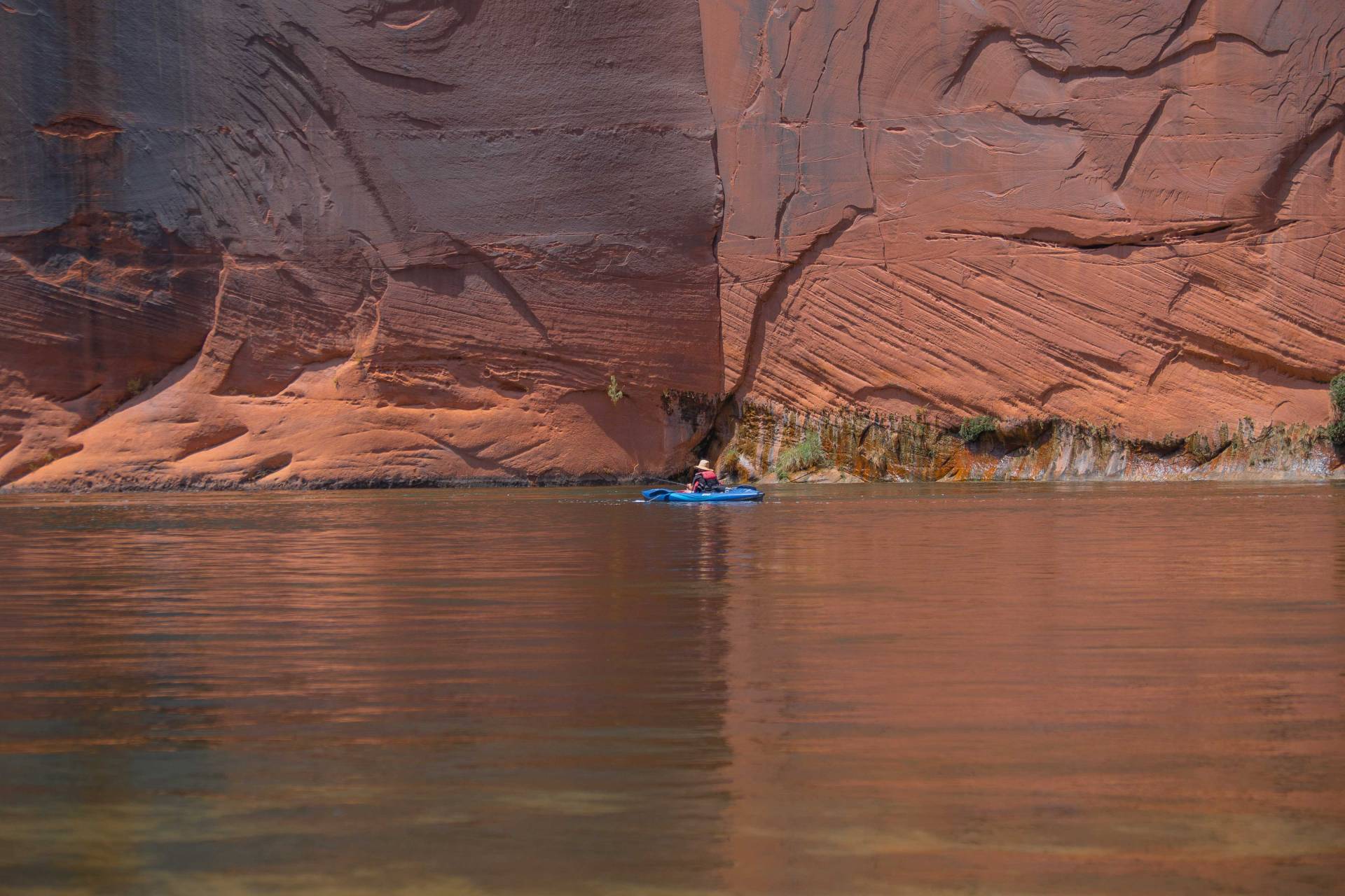 Paddling through Glen Canyon on the Colorado River is a must-experience for any paddler. The journey takes you through crystal-clear emerald waters, surrounded by towering sandstone cliffs and pristine shores that are truly unparalleled. As you float downstream, the serene current allows you to relax while observing an array of birdlife and the occasional Big Horn Sheep. Rainbow Trout dart beneath the surface, adding to the tranquil beauty of your adventure. The paddling is effortless, with no rapids or riffles to navigate, making it a leisurely and enjoyable experience.