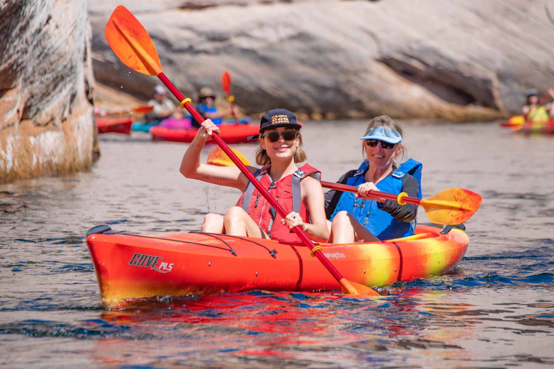 Kayaking near Page, Arizona, and within the Glen Canyon National Recreation area offers a truly unique experience, where paddlers can immerse themselves in the dramatic landscapes of the Canyon Country Outdoors. As you navigate the calm waters of Lake Powell and the Colorado River, you’ll be surrounded by towering red sandstone cliffs that rise dramatically from the water, creating a paddlers nirvana waiting to be explored. The proximity to Page allows for easy access to a plethora of iconic spots to glide through. The emerald waters provide a stunning backdrop as you paddle beneath the immense walls of the canyon, offering a more tranquil and intimate connection with the natural world. Whether you’re exploring the quiet coves, paddling through tight slots, or enjoying the expansive views of the canyon walls, kayaking in this area is an adventure that combines both serene beauty and a sense of discovery, making it a must-do for any outdoor enthusiast visiting the region.