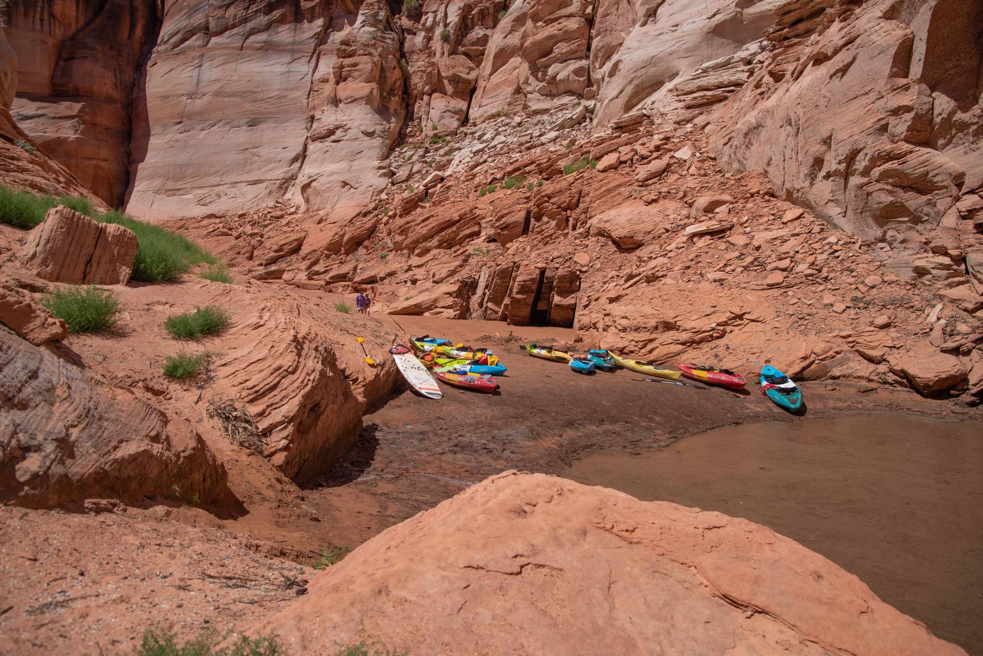 The launching area is located in the Glen Canyon National Recreation Area, which requires a $30 entry fee (unless you have an America the Beautiful Pass). - No Dogs