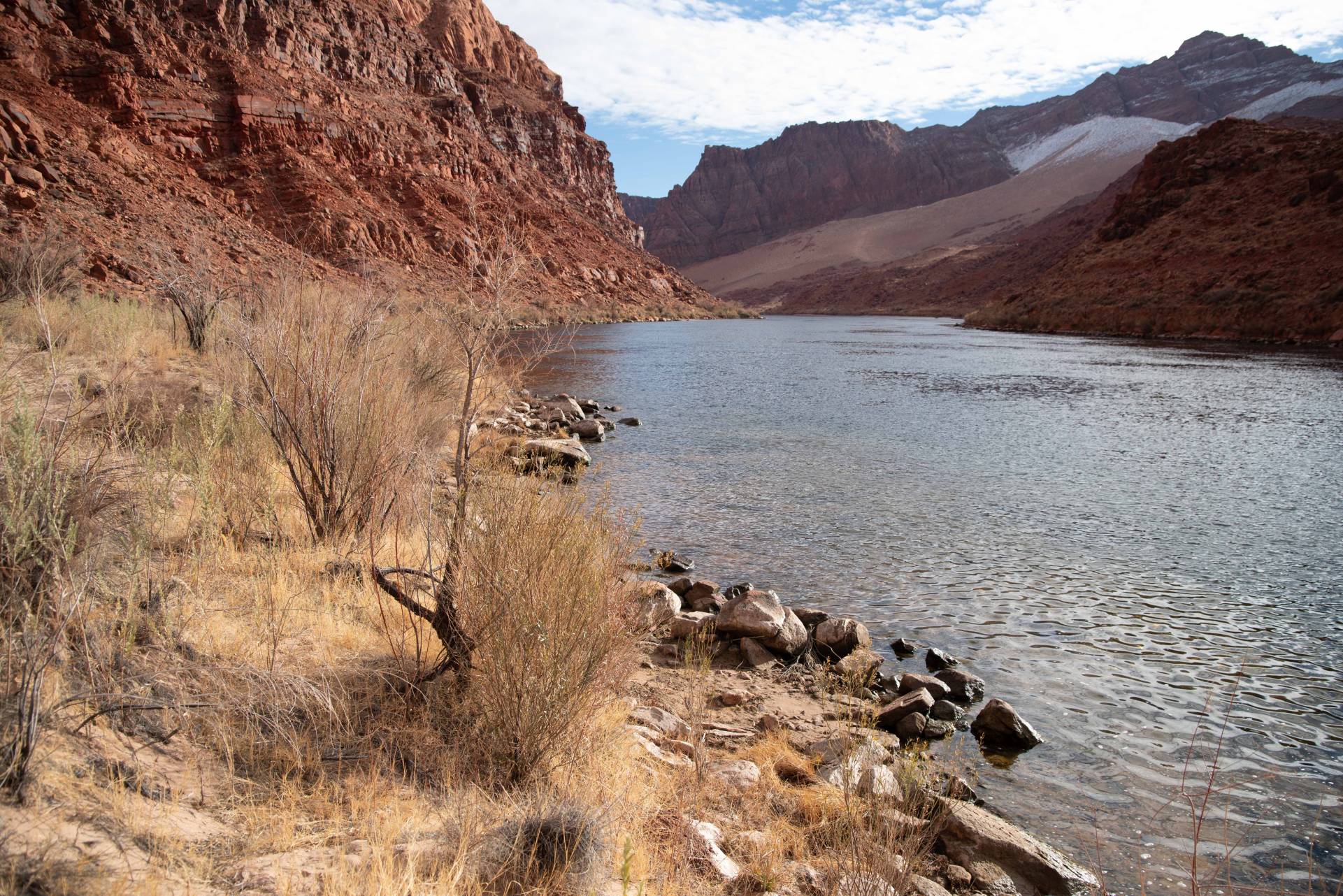 Take Lees Ferry Road off of Scenic Highway 89A at Marble Canyon AZ and travel 6 miles to its end. The dirt parking area is located just beyond the bathrooms and launch ramp. The trailhead is on the upstream side of the parking area.