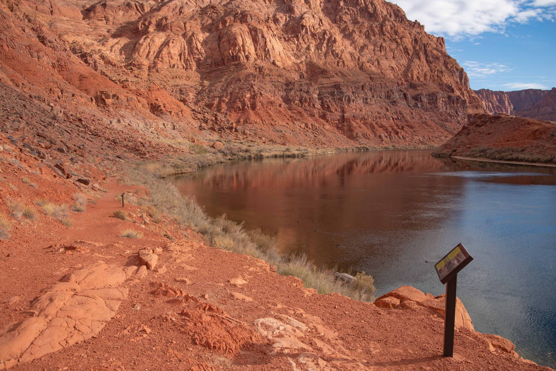 Informational signs along the trail provide context and details about the artifacts and historical elements you encounter, enriching your understanding of the region’s past. At Lees Ferry, you’ll also find amenities such as bathrooms and a shaded picnic area, making it a convenient spot for a break.