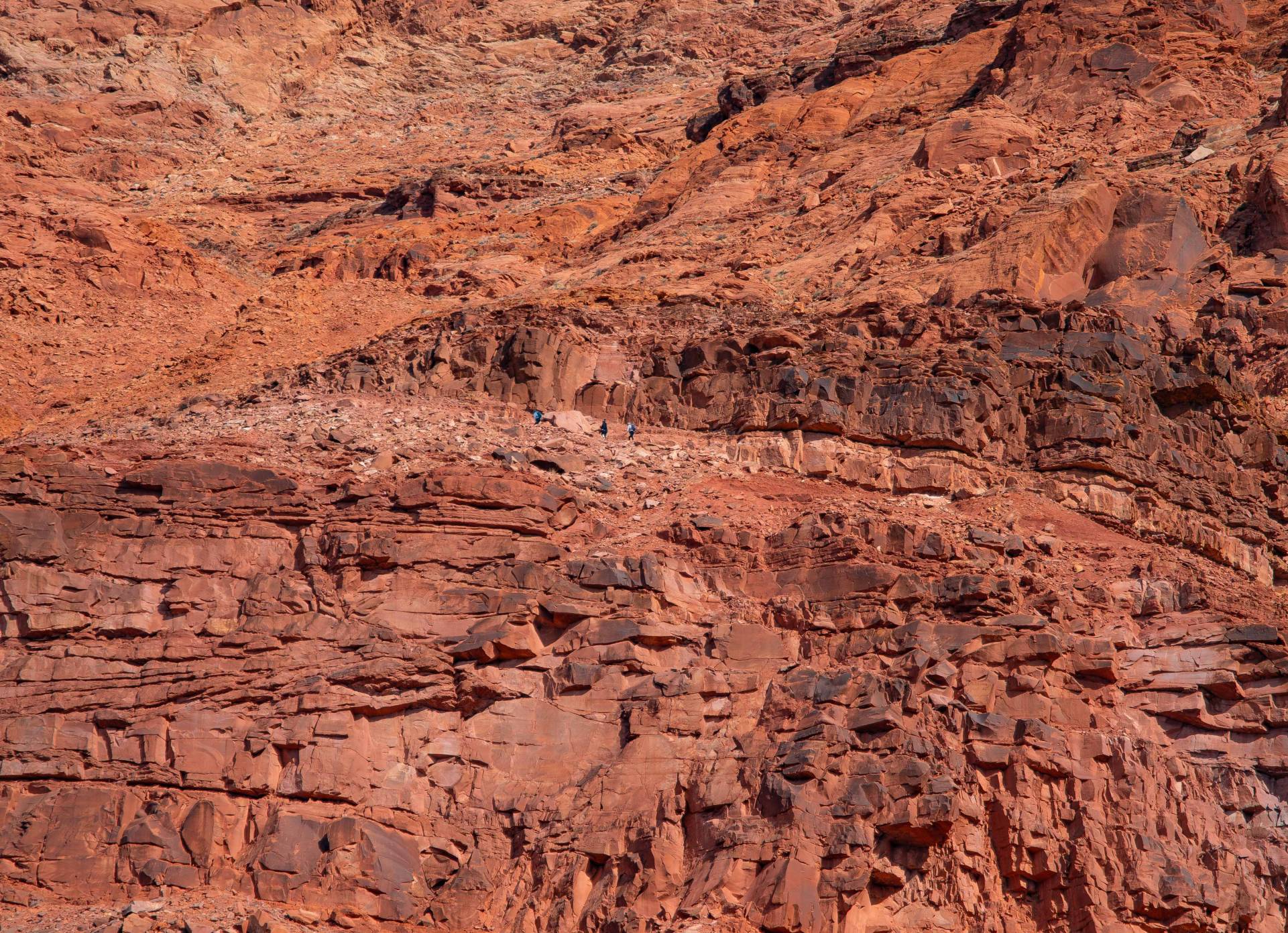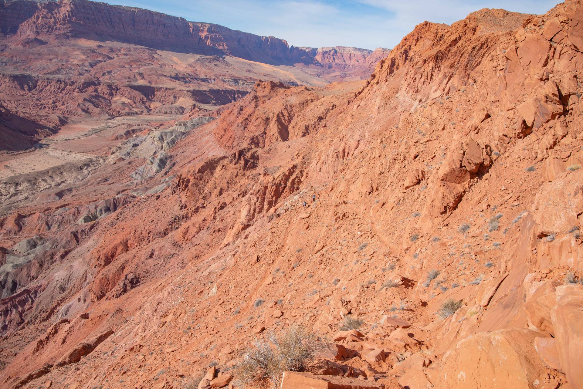 The trail ascends for two miles, following a zigzagging path up the line of least resistance. The lower half is well-maintained with rock stair steps, but as you near the top, the trail becomes more primitive, with sections of easy slick rock scrambling and sandy spots. At this point in the hike it is hard to imagine that a century ago some grizzly prospectors used to bring mules and wagons up this trail to retrieve coal from a distant deposit for their gold mining operation.