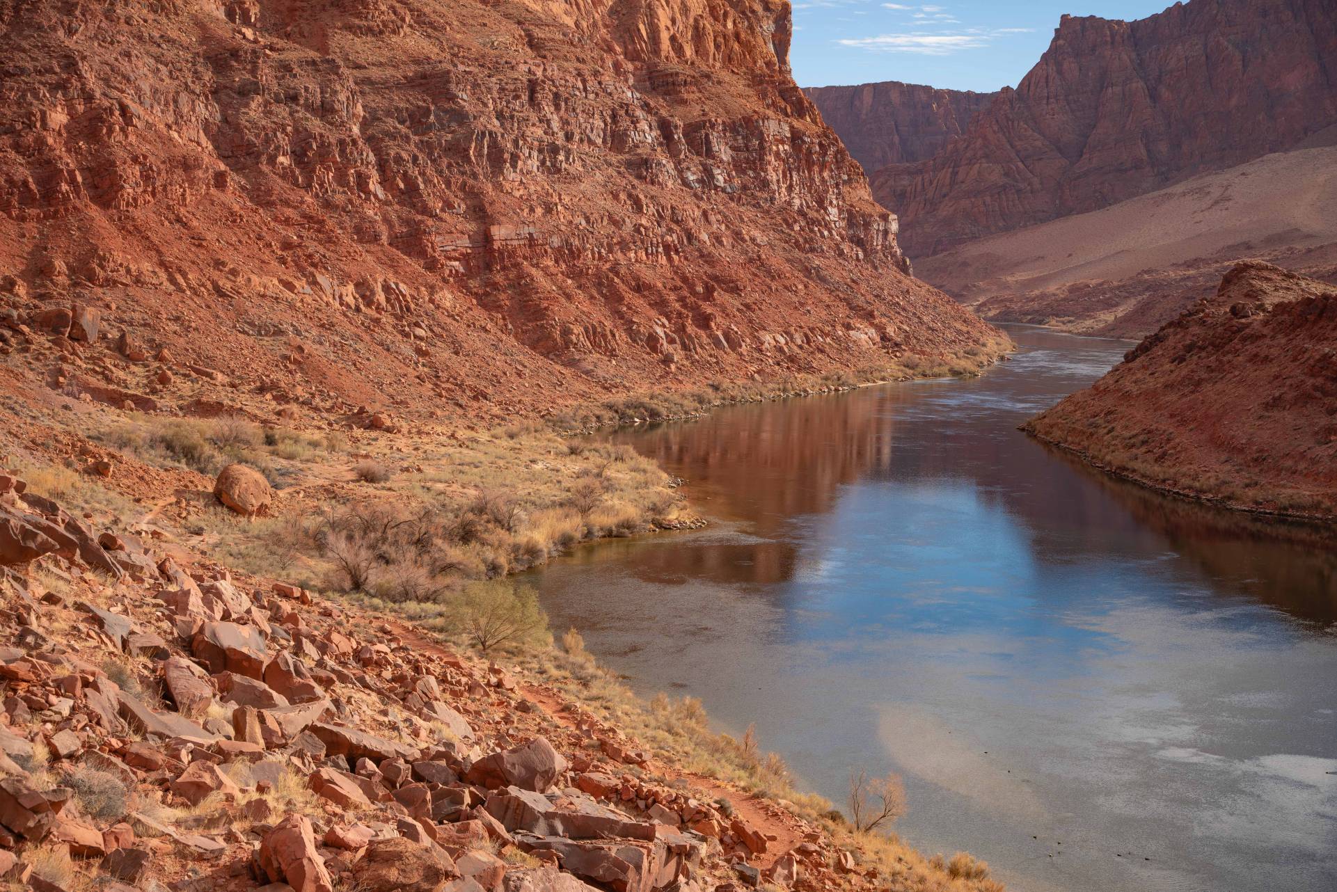 Take Lees Ferry Road off of Scenic Highway 89A and travel 6 miles to its end. The dirt parking area is located just beyond the bathrooms and launch ramp. The trailhead is on the upstream side of the parking area.