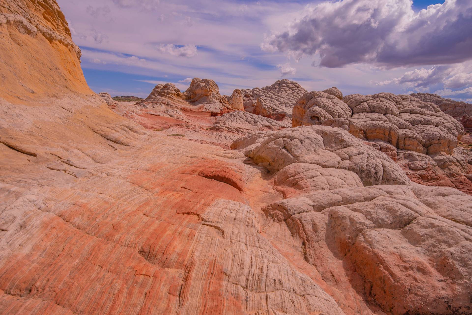 One of the premier destinations in Vermillion Cliffs National Monument, White Pocket is a remarkable sandstone formation situated on the remote Paria Plateau. A stunning and otherworldly landscape this remote sandstone formation is renowned for its striking, white rock layers and intricate patterns created by wind and water erosion. The terrain features vibrant, swirling colors and unique rock formations that evoke a sense of surreal beauty. Its remote location on the Paria Plateau ensures a serene, uncrowded experience, making it a favorite for photographers, hikers, and nature enthusiasts seeking an extraordinary and peaceful escape into nature’s artistry. The hiking is a trailless meander and is rated easy to moderate depending on your route choice.